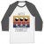features raglan 3/4 sleeves and a modern fit that is perfect for a day